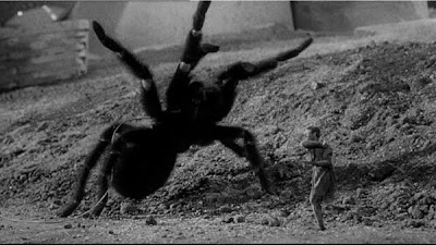 Los ataques que sufre el protagonista, primero por un gato y luego por una araña, forman parte del largometraje El increíble hombre menguante (1957). Estos asombrosos fotogramas de arriba sí pertenecen al filme.